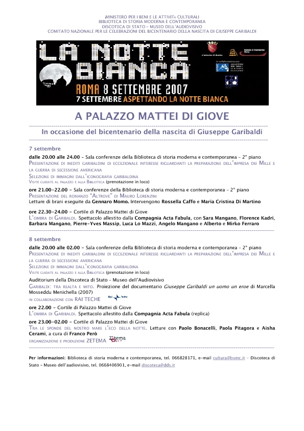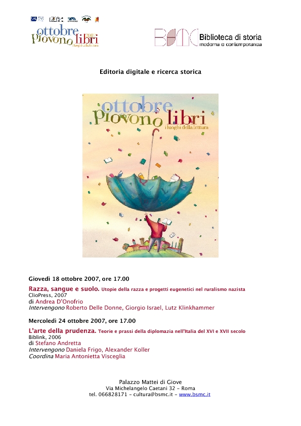 con particolare riferimento alla Biblioteca di storia moderna e contemporanea. Visita della